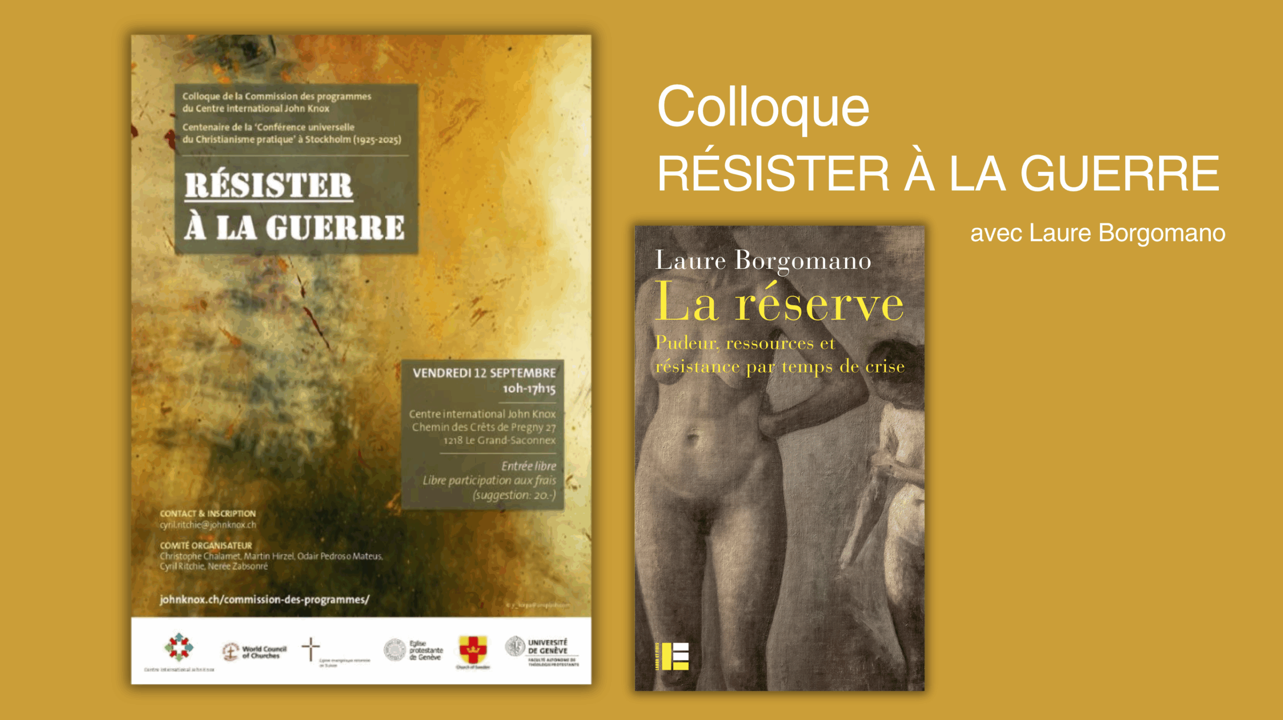 Voir plus 12 septembre « Résister à la guerre » avec Laure Borgomano 27 ch. des Crêts-de-Pregny Grand-Saconnex, 1218 Switzerland 10h00 - 17h15