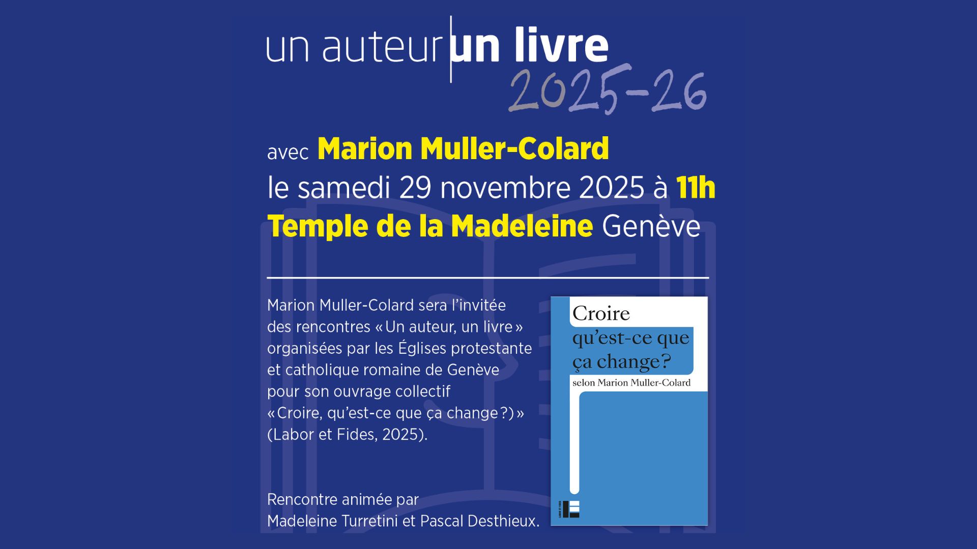 Voir plus 29 novembre « Un auteur un livre » avec Marion Muller-Colard (Genève) Rue de la Madeleine 15 Genève, 1204 Suisse 11h00 - 12h30